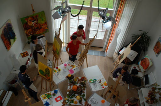 Wil je mijn werken in het echt zien dan ben je altijd welkom in mijn atelier De Hooimijt in Berlicum. Ook geef ik workshops voor groepen tot 10 personen en kun je bij mij een schildercursus volgen